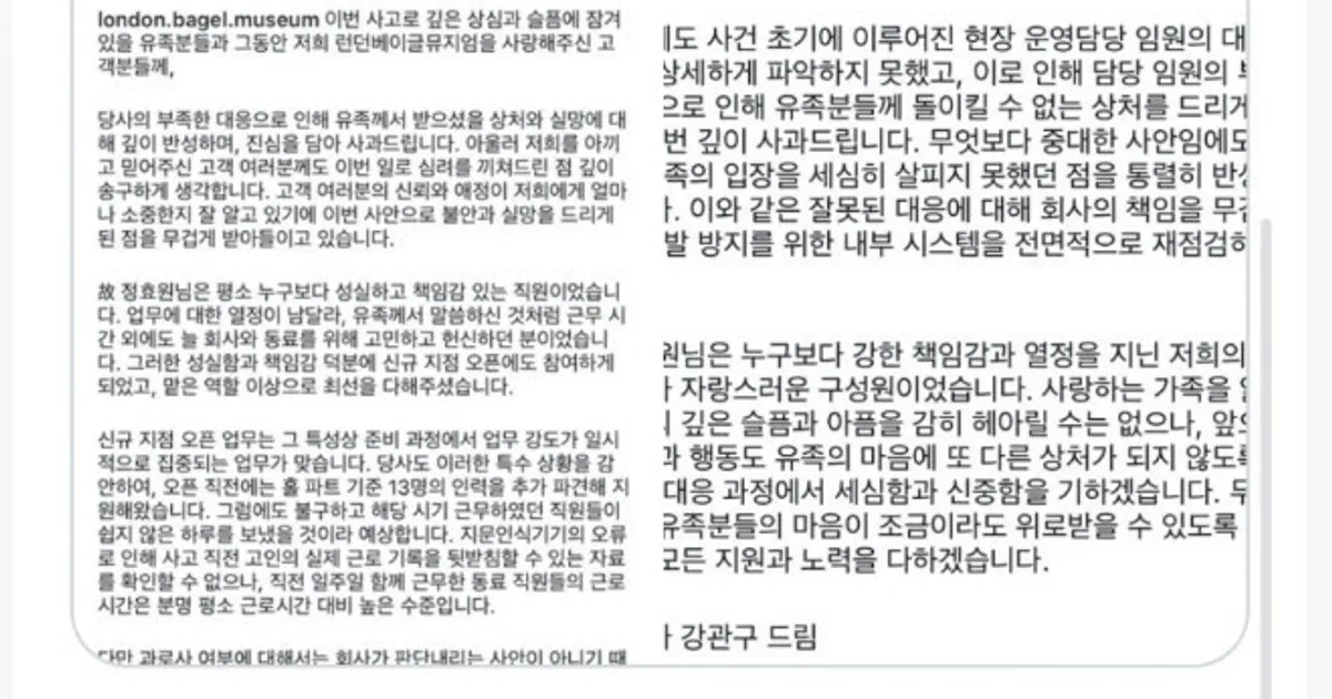 런던 베이글이 직원들 3개월 단위 계약서 나눠서 끊은 ...