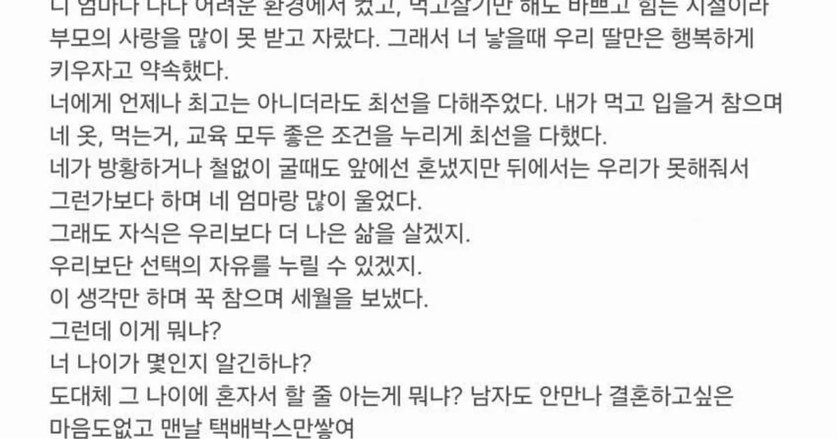 딸 키우다 지친 아버지의 문자